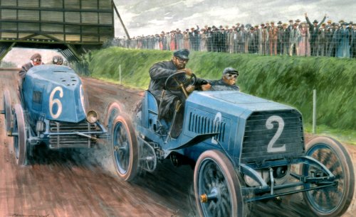 Baron de Knyff on Panard-Levassor leads Ferdinand Gabriel (Mors) 27 ½ x 16 7/8 featured in “Carlo Demand, In Motion and Color” by Gary Doyle 2007 |