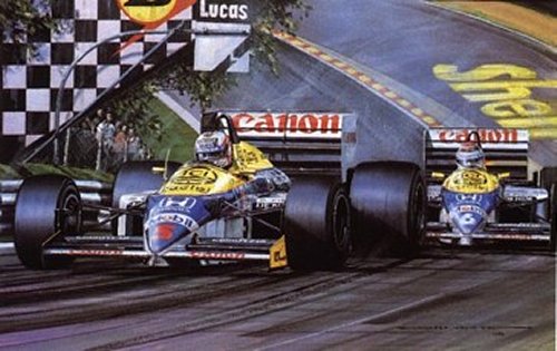 Nigel Mansell and Nelson Piquet on their way to finish first and second at the British Grand Prix, Brands Hatch 1986. NICHOLAS WATTS
