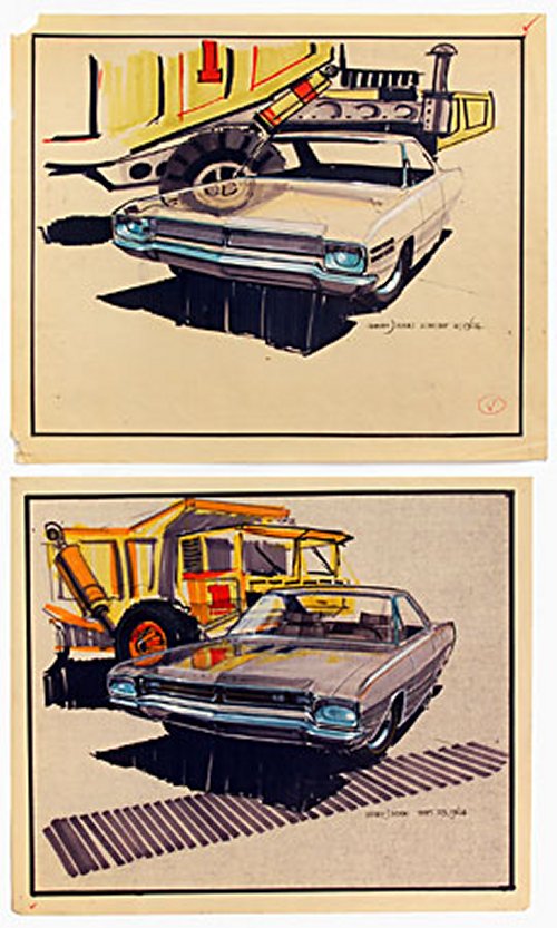 Harvey J. Winn, has over 35 years experience as an automotive and product designer and writer/producer of "business theater." He recently retired and is currently teaching design and visual communications. Wonderful sketches of actual and concept autos drawn by him. Here are two of six of his impeccable drawings reflecting his auto artistry and design.